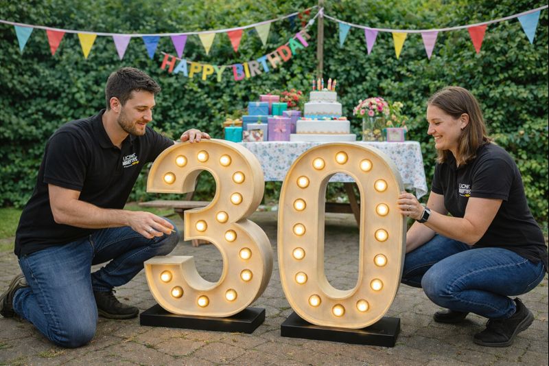 Wij bezorgen de letters stipt op tijd, zetten ze stevig neer en sluiten alles veilig aan. Zo staat alles klaar voor jouw speciale moment.